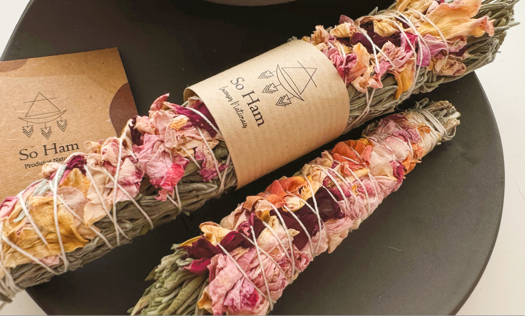 Feitos à mão pela marca portuguesa Soham, estes incensos combinam três plantas conhecidas pelas suas propriedades relaxantes – alecrim, alfazema e rosa – criando uma atmosfera delicada, serena e reconfortante.
